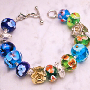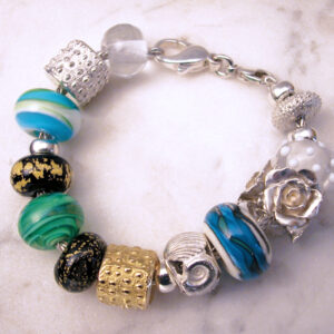 Bracelet mit Muranoglasperlen, Gold und Silber