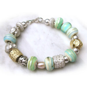 Bracelet mit Muranoglasperlen, Gold und Silber